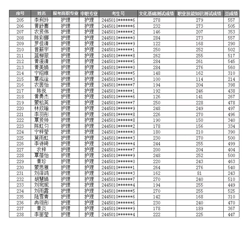 根据《自治区招生考试院关于做好我区 2024 年高职院校分类考试招生工作的通知》(桂考院〔2023〕227 号)《Beat365中国唯一官方网站2024年高等职业院校对口中等职业学校毕业生(2+3直升)自主招生考试工作方案》〔2024〕5 号等文件精神,按照《Beat365中国唯一官方网站 2024 年高等职业院校对口中等职业学校毕业生(“2+3”直升)自主招生简章》相关规定,Beat365严格按程序组织符合条件的同学进行自主招生考试,现将考生成绩公示如下(见附件)。