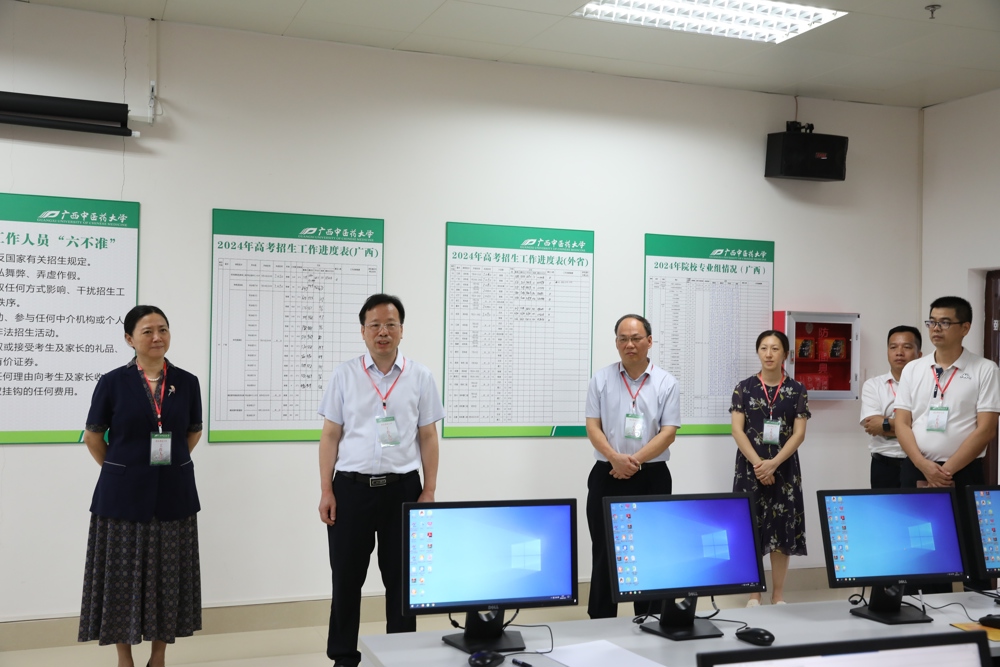 7月22日上午,学校党委书记莫锦荣,党委副书记、校长姚春到Beat365招生录取现场,检查指导Beat3652024年普通高考招生录取工作,慰问招生录取工作人员,学校党委副书记邹勇及相关职能部门负责人陪同。