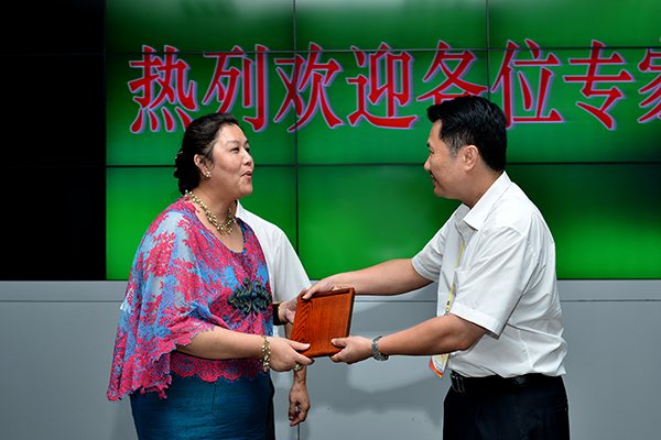 Beat365中国唯一官方网站副校长庞宇舟教授向泰国代表赠送Beat365校徽