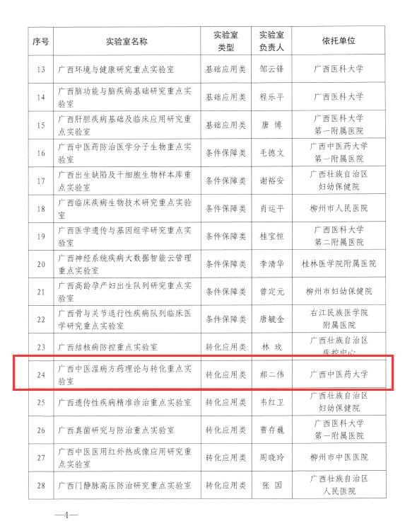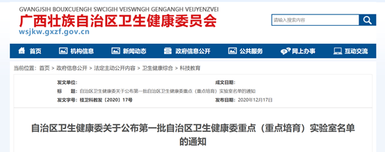 喜讯:广西中医湿病方药理论与转化重点实验室获批为第一批广西壮族自治区卫生健康委重点实验室