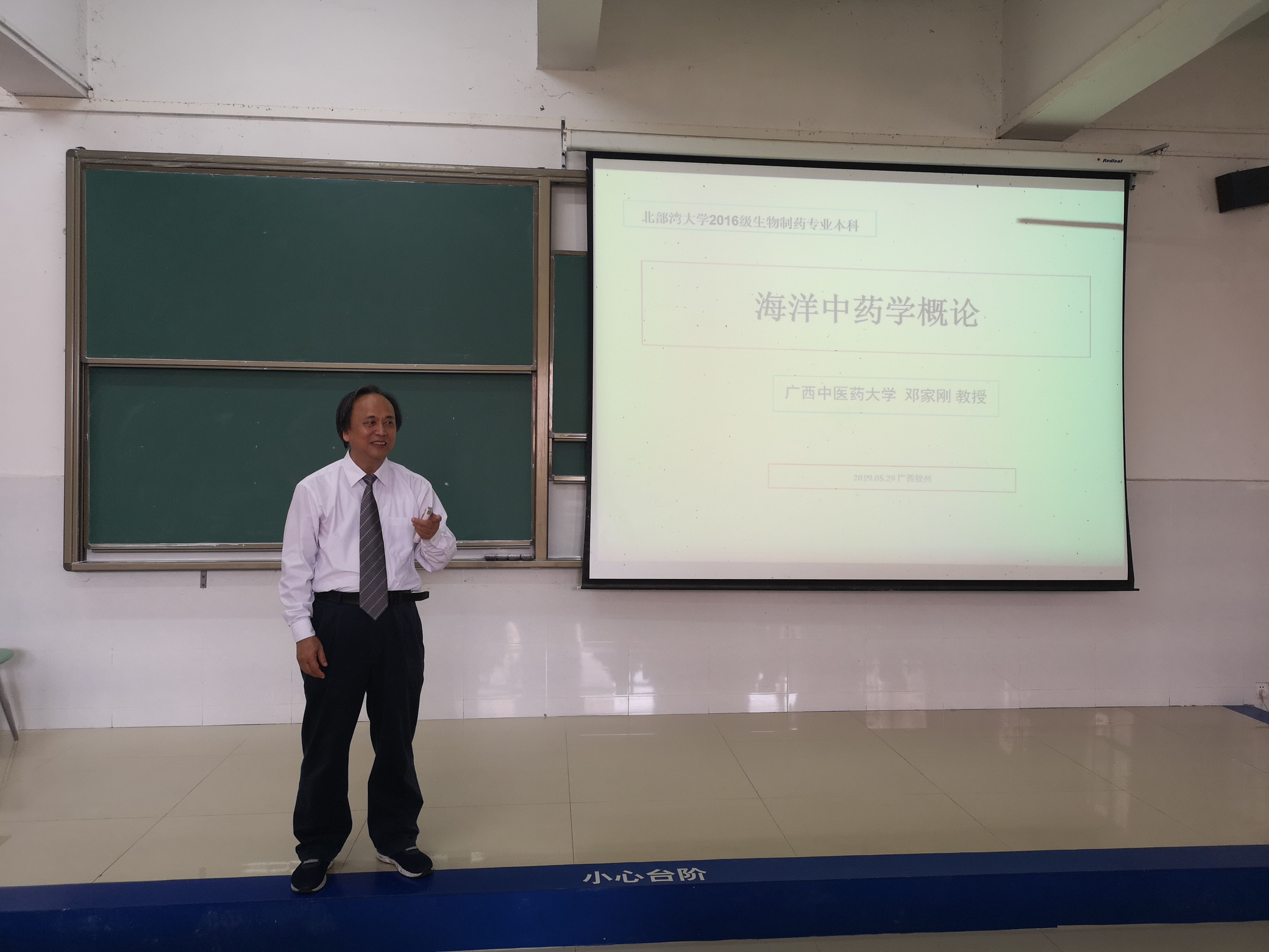 2019年5月29日,受北部湾大学海洋学院邀请,Beat365《海洋中药学》学术带头人邓家刚教授为该校2016级生物制药专业本科学生100余人讲授《海洋中药学概论》。