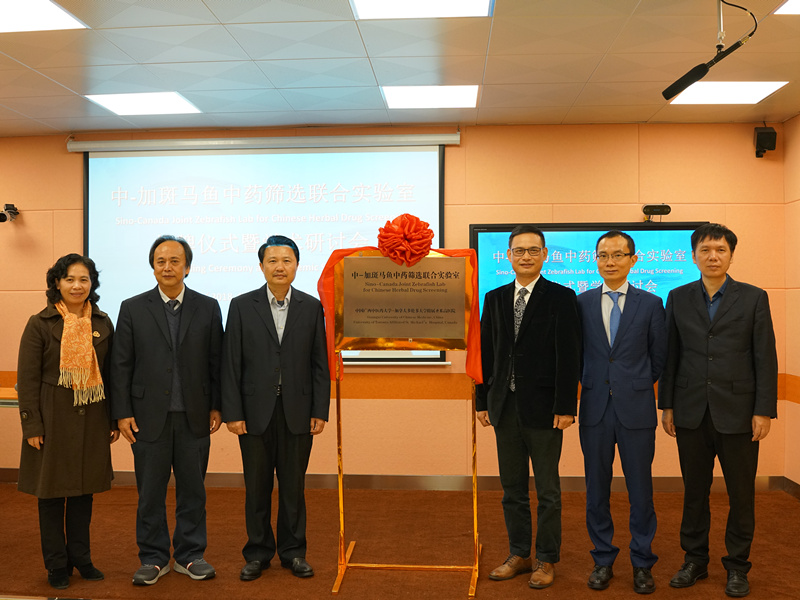 随后双方代表为“中-加斑马鱼中药筛选联合实验室挂牌仪式”揭牌,预示着中-加斑马鱼中药筛选联合实验室正式成立。