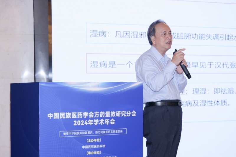 2024年06月22日实验室邓家刚教授受邀参加在云南大理举办的“中国民族医药学会方药量效研究分会2024年学术年会”。会上,邓家刚教授作主题为《张仲景理湿方药量设法则探讨与应用体会》的报告,探讨了医圣张仲景理湿方药的量效关系现代化应用心得体会,为现代中医药化量效关系研究提出了新的思考和解决方法。此次会议共同参会的还有实验室韦玮副研究员,研究生杨潇。