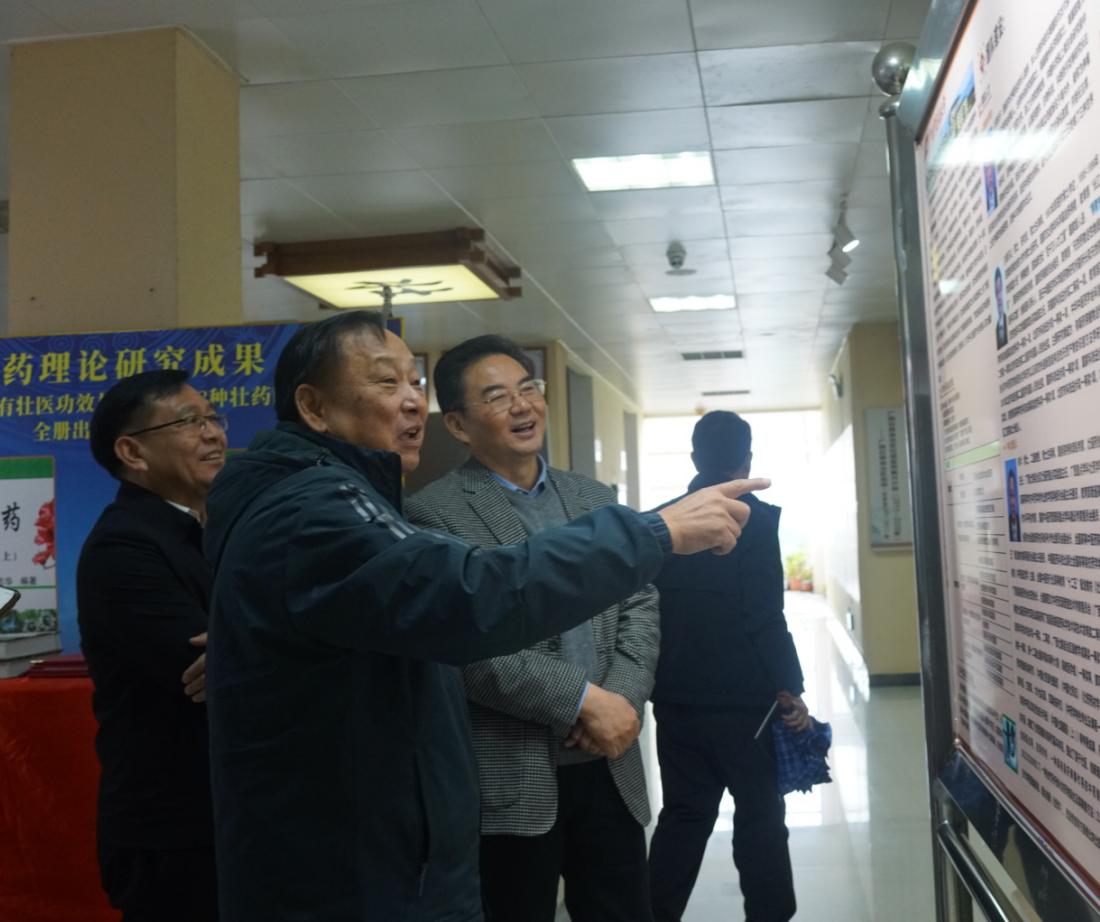 谭仁祥教授以《中药成分的生物“智造”》为题作报告。朱华教授热情介绍了壮瑶药重点实验室的基本情况,展示了壮瑶药理论和实践研究成果、平台获得的科技奖项、中药资源普查标本库以及实验室产品兰香草精油等。谭仁祥教授指出:“壮瑶药实验室产品壮药兰香草精油效果好,壮瑶药发展很有特色与优势。” 谭仁祥教授和李典鹏副校长对平台发展建设及成果表示肯定且给予高度评价。