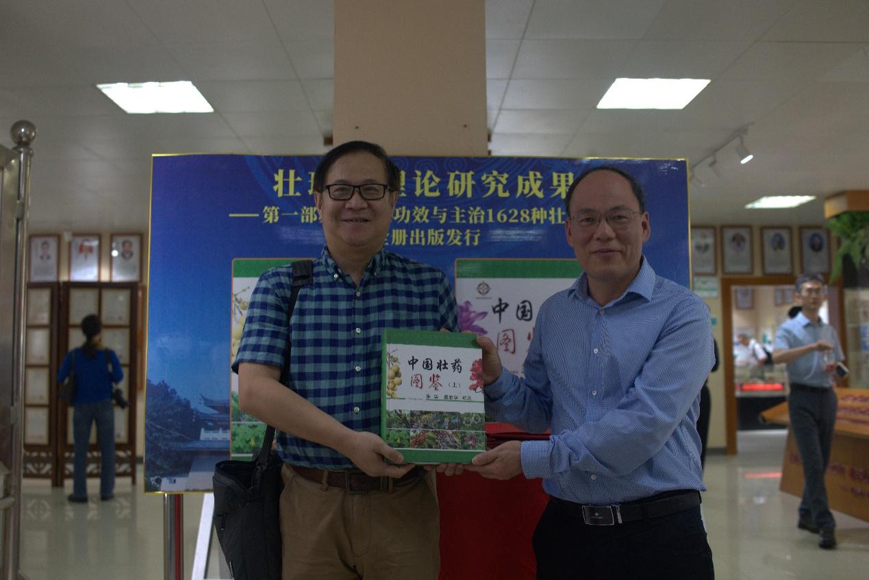 为进一步加强壮瑶药开发利用情况的交流学习,11月09日上午,九三学社领导专家宋尚桂(九三学社中央组研中心主任、山东省政府参事),秦  松(全国政协委员、烟台市政协副主席、九三学社山东省委会副主委)及张桂德、李 斌、秦世杰、唐建辉、李  胜、江  涛、杨剑超、冯大伟、刘正一、庄龙传等一行莅临我平台考察交流,Beat365党委副书记邹勇、统战部部长姜建萍等参加考察交流,实验室主任朱华教授介绍壮瑶药开发利用情况,并讲述了壮、瑶医药理论及一大战略:壮瑶医药振兴计划,建立质量标准体系,五大突破:理论突破、资源突破、标准突破、产品突破、人才培养突破,并向他们汇报了实验室建设及科研成果情况、中药资源普查数据库、标本库、新药龙血竭以及实验室产品兰香草精油等。宋尚桂、秦松等对我平台的热情接待表示感谢,并对平台发展建设及成果表示肯定且给予高度评价。秦松副主席在嘉宾册上签名留念并写下”中国壮药发展壮大推陈出新走向世界”的美好愿景。