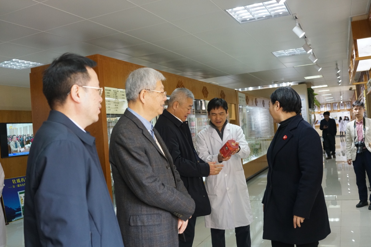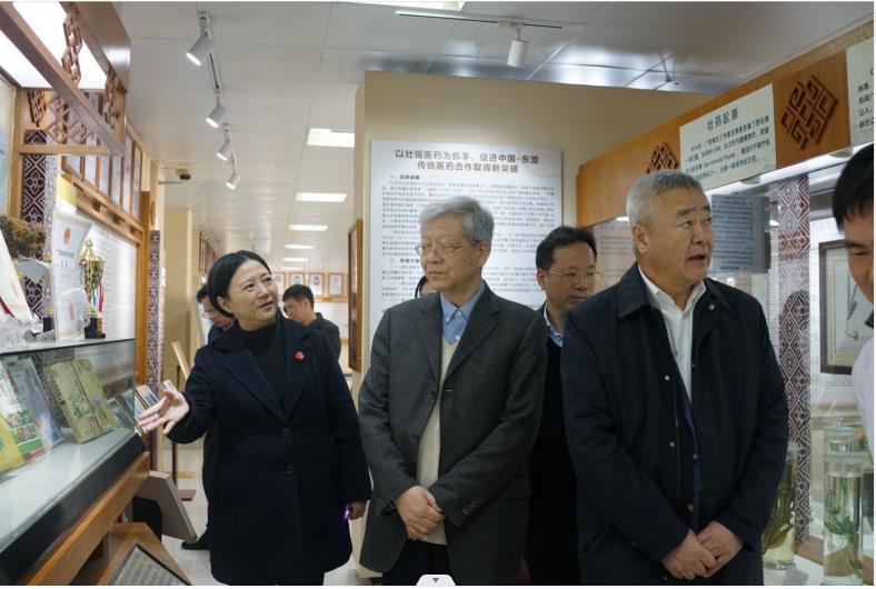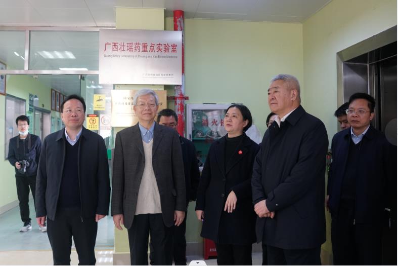 会后,院士一行实地考察了我平台,了解我平台中药壮瑶药科技创新工作,学校党委书记莫锦荣、校长姚春、副校长冷静、总会计师何刚亮陪同考察交流,本平台常务副主任苏健博士、张淼老师、谢凤凤老师、许立拔老师、蒋开雨老师、韦露玲老师、余秀琪助理和刘祖锭助理以及本平台研究生参会。苏健博士汇报了我平台在产学研等方面取得的成绩,希望院士多指导,进一步指导中药材壮瑶药开发、人才培养、产业发展、科学研究、临床实践等各方面研究工作,共同推动中药壮瑶药事业与产业高质量发展。杨玉良院士和董尔丹院士在本平台考察时表示,Beat365中国唯一官方网站壮瑶药研究平台很有特色,很有发展前景,希望进一步结合区域特色,推动壮瑶药高质量发展。