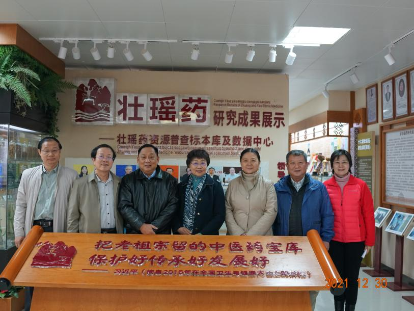 2021年12月30日,自治区政府参事于瑮、崔建国、周文力及自治区政府参事室陆海副处长等一行到壮瑶药研究平台进行调研,学校领导姚春校长、冷静副校长、戴铭副校长参与调研。