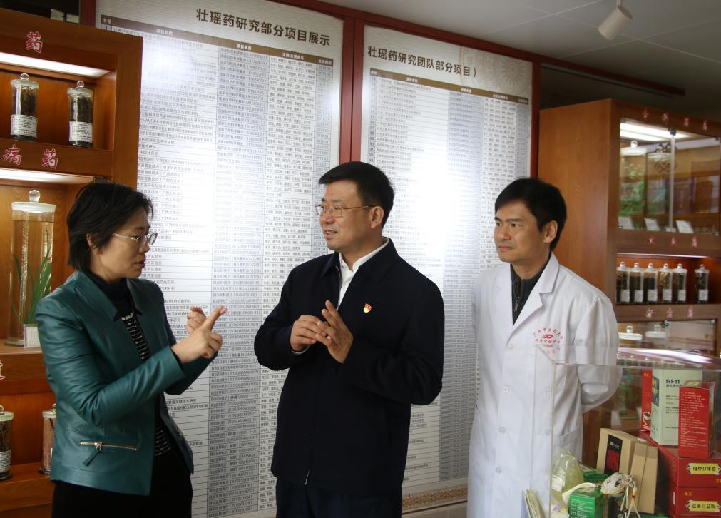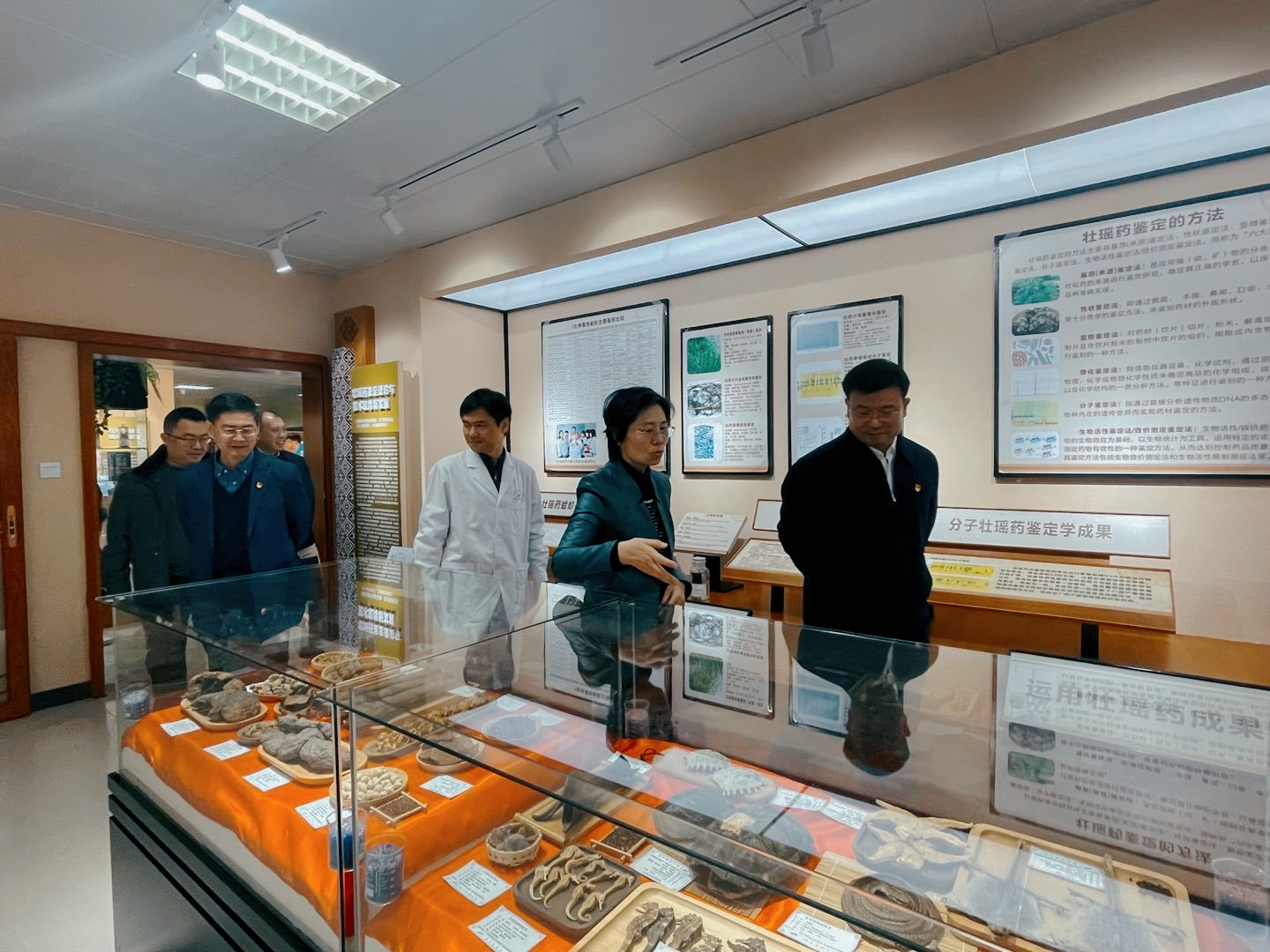 2021年12月22日,广西科技大学党委书记赵君一行4人在Beat365党委副书记何并文、副校长冷静的陪同下到我平台参观调研。赵君教授表示,壮瑶药的发展取得很大成果,壮瑶药的持续发展要结合广西的实际,贯彻自治区党委第十二次党代会精神,落实建设壮美广西“1+1+4+3+N”的目标任务,推动促进经济与社会发展。