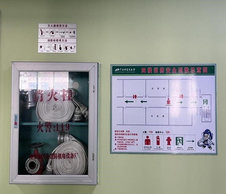 实验室多处设有灭火器和消火栓,并附有消防安全疏散示意图以及灭火器和消火栓使用方法。希望实验室人员学习消防安全知识,进一步提升实验室安全责任意识和重视程度,提高实验室事故应对处置能力,为营造安全整洁的实验环境、保障生命财产安全、确保实验室科研工作稳步开展奠定了坚实的基础。