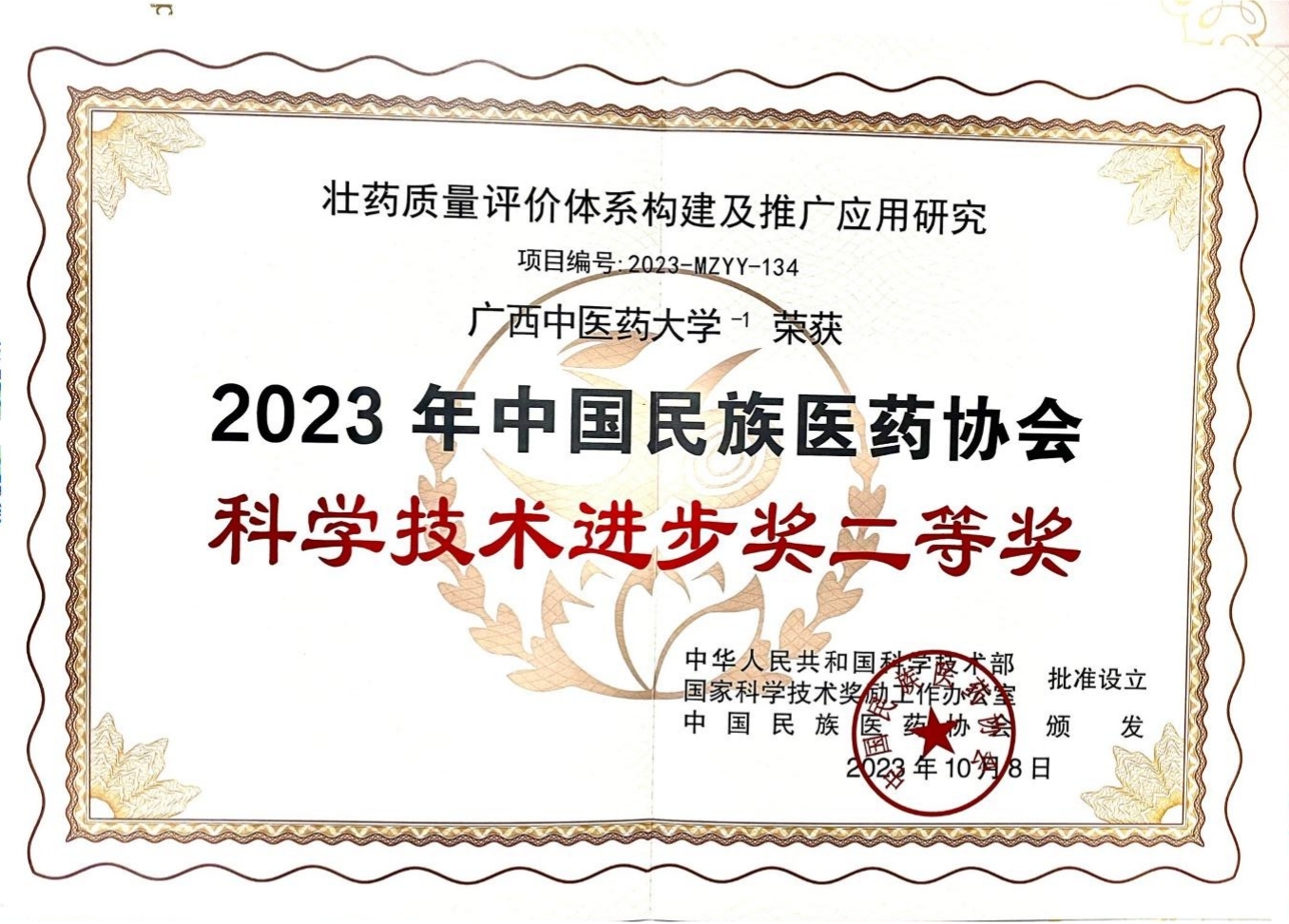我平台《壮药质量评价体系构建及推广应用研究》获2023年度中国民族医药协会科学技术奖二等奖