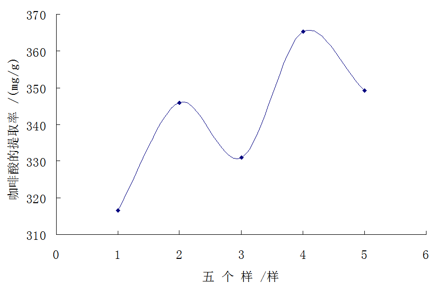 图10五个样品在最优提取条件下对咖啡酸的提取率