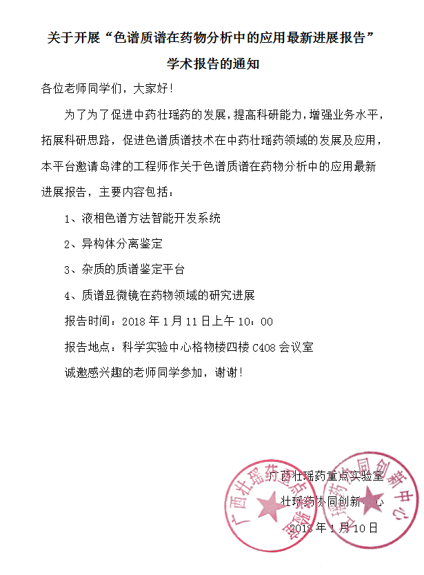 为了为了促进中药壮瑶药的发展,提高科研能力,增强业务水平,拓展科研思路,促进色谱质谱技术在中药壮瑶药领域的发展及应用,本平台邀请岛津的工程师作关于色谱质谱在药物分析中的应用最新进展报告,主要内容包括: