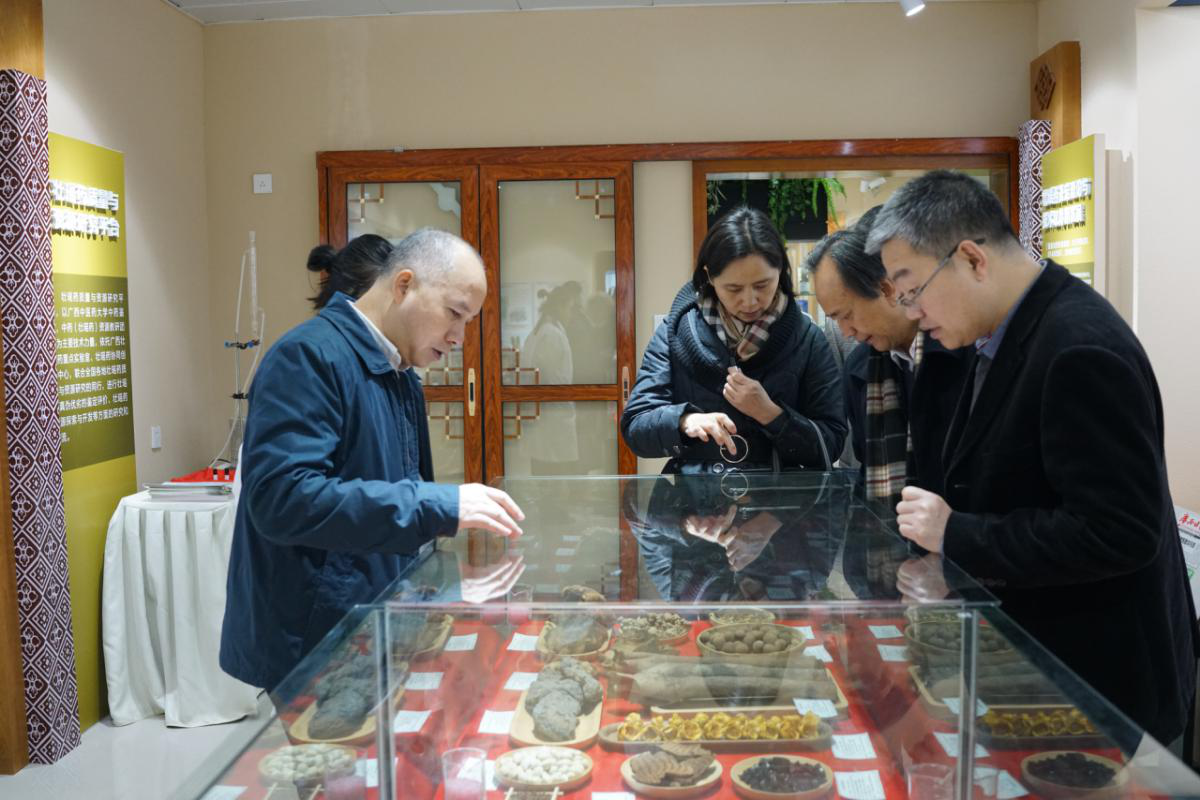 2019年1月16日上午,自治区中医药管理局姚春局长、Beat365戴铭副校长莅临我实验室指导工作,姚春局长、戴副校长一行考察我实验室主办的壮瑶药研究成果展暨壮瑶药资源普查标本库及数据中心,本平台副主任傅鹏博士、苏健博士首先代表本实验室主任朱华教授对各位莅临表示热烈欢迎和衷心感谢,并就壮瑶药理论传承、资源普查、质量标准三个方面的研究成果进行了汇报。姚局长对本实验室工作所取得的成绩给予高度肯定。对本实验室自主研发的壮瑶药产品百合玉竹酒和黄精桑葚酒表示赞扬。她表示,继续大力支持壮瑶药协同创新中心、壮瑶药重点实验室的科技工作,特别是壮瑶药高质量成果产业化工作。自治区中医药管理局副局长陈赤、处长黎甲文 、副处长刘畅和Beat365邓家刚教授、陈勇教授及夏天、覃海、张雯艳等参加本次活动。