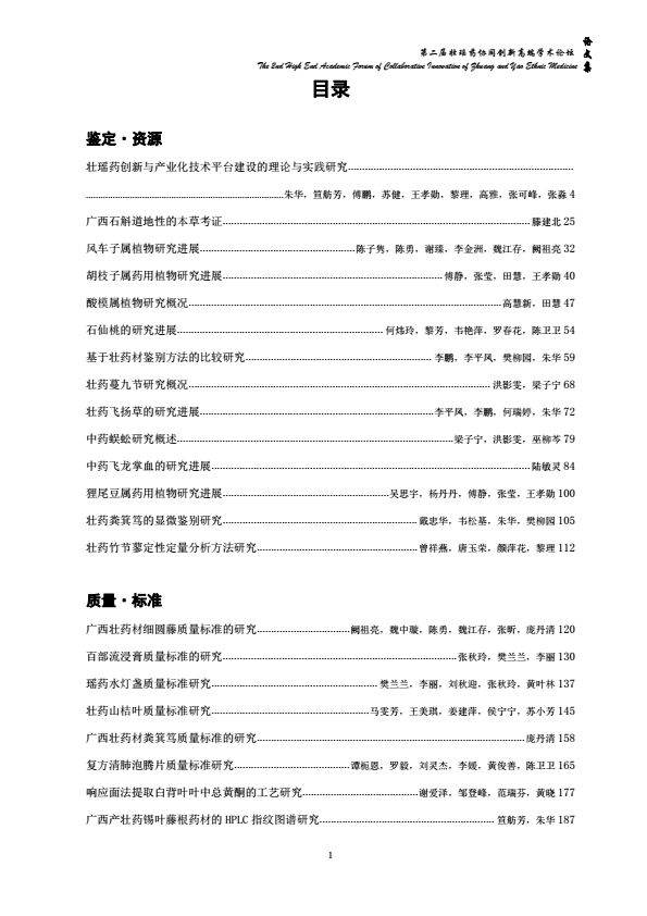第二届壮瑶药协同创新高端学术论坛论文集