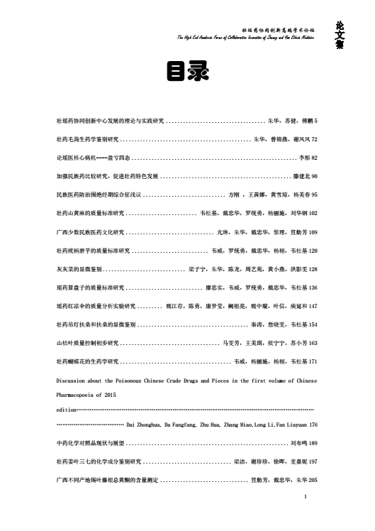 壮瑶药协同创新高端学术论坛论文集