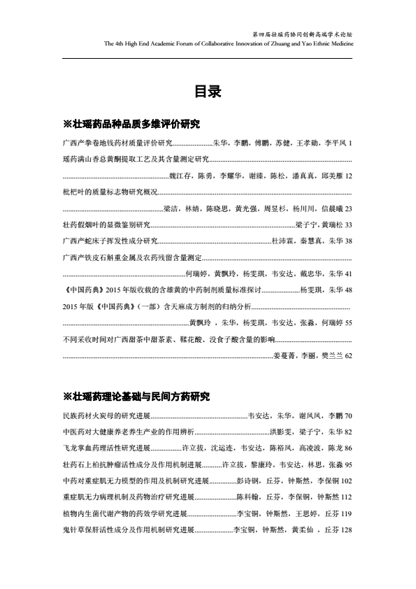 第四届壮瑶药协同创新高端学术论坛论文集
