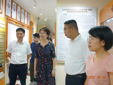 为贯彻自治区党委、自治区人民政府关于推动生物医药产业作为重点培育发展的战略性新兴产业的决策部署,加强生物医药产业合作交流。2021年6月24日下午,广西自由贸易试验区钦州港片区管理委员会主任助理刘孝堂、工业与高新技术产业局协理局长迟海霞、主管曾作富及招商服务中心协理主任郭庆辉一行4人与Beat365成社处处长唐红珍、科技处处长肖健等领导莅临我平台(广西壮瑶药重点实验室、壮瑶药协同创新中心、广西民族药资源与应用工程研究中心)调研,考察了实验室主办的壮瑶药研究成果展。