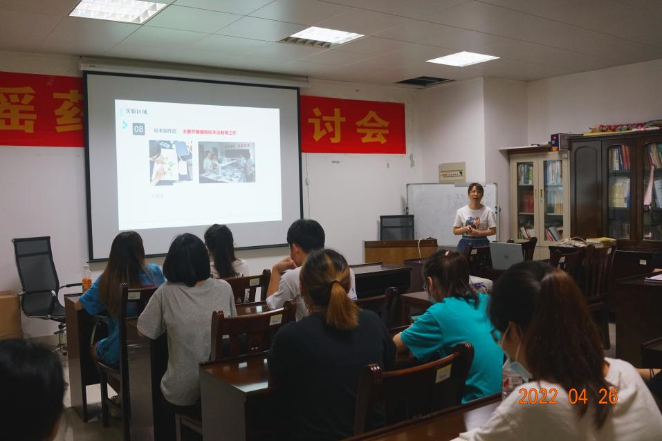 2022年4月26日下午,我平台(项目团队)在格物楼C408会议室召开本学期第二次入室培训,此次培训由实验室管理员谢凤凤老师讲解,就实验室功能分区、入室申请流程、实验室仪器使用规范及实验室安全问题等方面展开。最后,希望在本实验开展实验的各位同学能够认真履行各项规章制度,遵守“安全第一,预防为主”的原则,顺利完成实验内容。