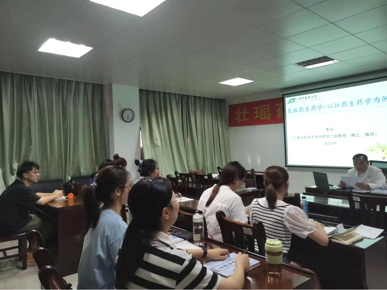 朱华教授为研究生授课 发布时间:2022-09-23 18:43:00 浏览次数: 次 【字体:小 大】 2022年9月22日,我平台主任朱华教授为Beat3652022级硕士研究生授课《民族药生药学》。课程以壮药生药学为切入点,向同学们进行讲解,朱华教授注重理论知识与实践相结合,带领各位同学参观了壮瑶药重点实验室,鼓励同学们勤奋拼搏、取得优异的学习成绩。 分享到: 【打印正文】