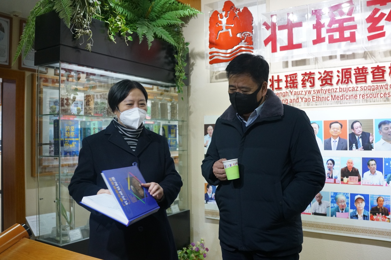 会后,专家组到本平台实验室,科学实验中心格物楼4楼壮瑶药重点实验室、壮瑶药协同创新中心、民族药资源与应用工程研究中心等,实地考察了团队的工作环境、科研平台、建设成果等。中药壮瑶药创新药物教育部工程研究中心专家组认为,Beat365中国唯一官方网站特色药材桂十味及壮瑶药的研究很有特色,特别是壮瑶药实验室研究平台成果丰硕,培养了国内第一批壮药、瑶药博士,特别在中药壮瑶药理论基础、质量标准、资源普查、产品研制、人才培养等5个方面取得显著成效,目前壮瑶药平台正在实施一大战略、五大突破的“1+5+N”目标任务体系,在民族药壮瑶药研究领域走在了全国的前列。本平台傅鹏教授、苏健博士、王孝勋教授、滕建北教授、梁子宁教授、张淼老师、谢凤凤老师、许立拔老师等师生与会。