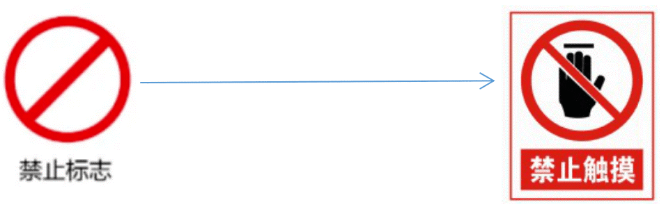 2、圆形边框带斜杠的禁止标识,用来表达禁止的不安全行为。