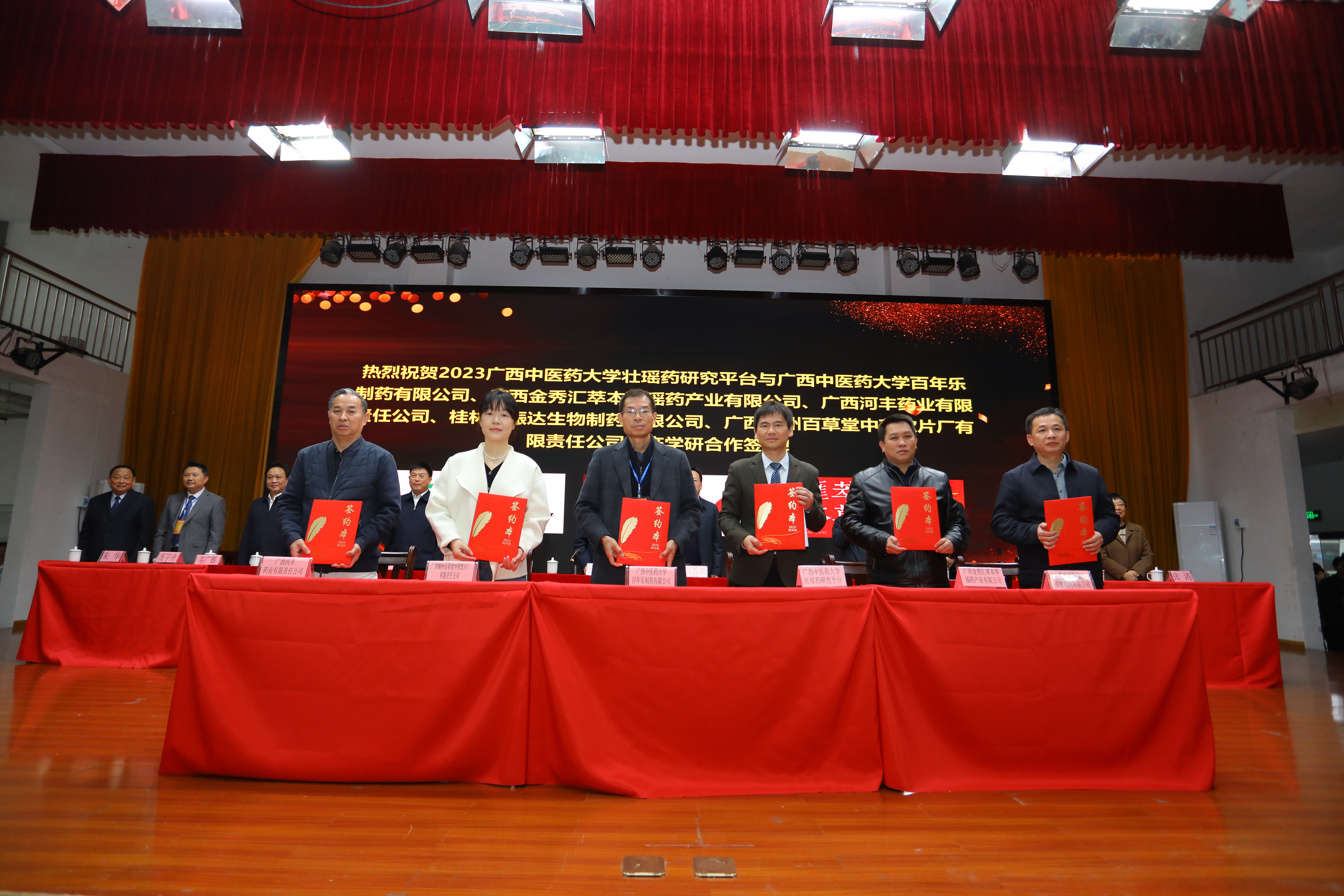 论坛举行2023年10项Beat365中国唯一官方网站壮瑶药协同创新研究突出成果揭幕及祝贺仪式。一是创建壮药药材学,《壮药药材学》荣列全国中医药规划教材,这是第一部具有壮药药材鉴定特色的学科教材首次由中国中医药出版社面向全国出版发行。二是“壮药材质量标准研究与应用”成果荣获国家教育部高等学校科学研究优秀成果奖(科学技术)——科学技术进步奖二等奖,为当年广西牵头唯一获奖项目,填补空白。三是Beat365中国唯一官方网站药理学与毒理学学科进入ESI全球排名前1%,标志着学校相关学科领域研究迈入国际高水平学科行列;“壮药质量评价体系构建及推广应用研究”成果获中国民族医药协会学技术奖二等奖;《中国壮药图鉴》获得世界中医药联合会学术著作奖;“壮药旱田草等 5 个品种质量评价与标准研究”成果获中国民族医药学会药物创新奖;“5种瑶药材质量评价及产品开发关键技术研究”成果获得广西医药卫生适宜技术推广奖,年度获奖四项,创新高。四是壮瑶药协同创新理论研究成果《壮瑶药研究(第八期)》出版发行,该季刊的出版,开辟了壮瑶药研究学术季刊的历史先河,也是中国最多人口少数民族壮族传统药物研究专栏。五是壮瑶药协同创新产业化成果“沙棘天门冬氨酸钙片”“参芪茯苓饮液”等产品展示揭幕。六是壮瑶药培养人才有新突破,自治区级教学成果《本科中药学类专业教学质量国家标准的研究与实践》、自治区级社科成果《广西壮瑶医药产业发展研究》通过鉴定;壮瑶药研究生吴文源等荣获第十九届全国中药标本竞赛一等奖。七是“广西中药民族药产业集群协同攻关与优势产品提质增效研究——瑶药三泡外用洗液的研发与推广”项目荣获批准启动。八是2023Beat365中国唯一官方网站壮瑶药研究平台与Beat365中国唯一官方网站百年乐制药有限公司、广西金秀汇萃本草瑶药产业有限公司、广西河丰药业有限责任公司、桂林市振达生物制药有限公司、广西柳州百草堂中药饮片厂有限责任公司等产学研合作签约。九是“壮药质量评价体系构建及推广应用研究”等54项研究成果获“第八届壮瑶药协同创新学术成果奖”。十是庞宇舟、黄瑾明、黄汉儒、秦祖杰、卢汝梅、张涛、唐恢天、傅鹏、苏健、王孝勋、钟世安等26名同志荣获壮瑶药协同创新有突出贡献优秀专家;笪舫芳、黄鼎、谢凤凤、张淼等10名学者荣获2023年度壮瑶药协同创新优秀青年专家(邕江学者)。