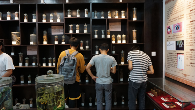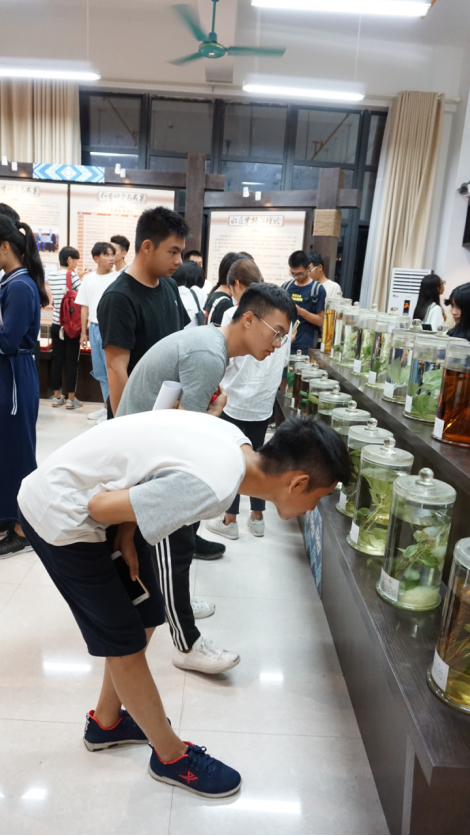 讲解员以生动有趣的事例为新生讲述了壮医文化的起源、发展历史、常见的壮药名称以及使用方法,为他们揭开了壮医学神秘的面纱,激发了同学们的兴趣。同时也让他们感受到了壮族传统民族文化和医药文化的博大精深。