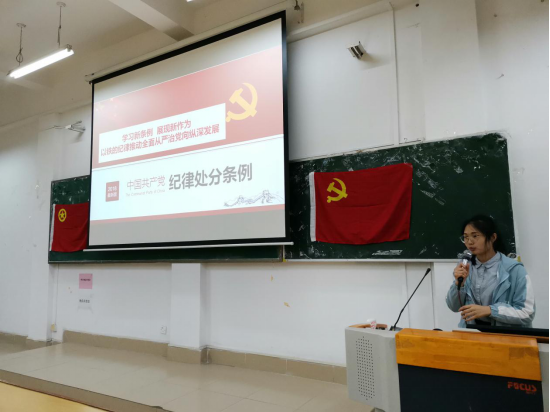 2019年3月17日,壮医药学院学工党支部全体党员在东梯二教室对新修订《中国共产党纪律处分条例》的产生时代背景、目的意义和具体内容等方面进行了专题学习。此次会议由壮医药学院学工党支部委员罗筱凡主持。