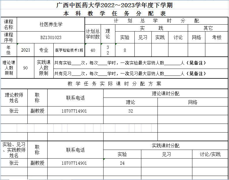 教学任务分配表