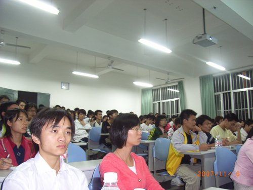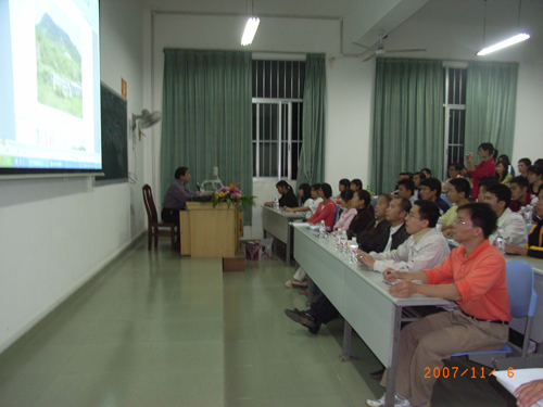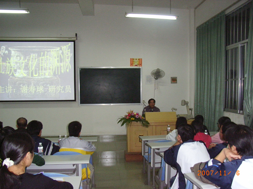 2007年11月6日晚,由壮医药学院主办,中国文化遗产基金会民族文化专家委员会副主任、壮族在线理事总顾问谢寿球研究员主讲的《壮族文化的渊源》讲座在西A-8教室如期举行。