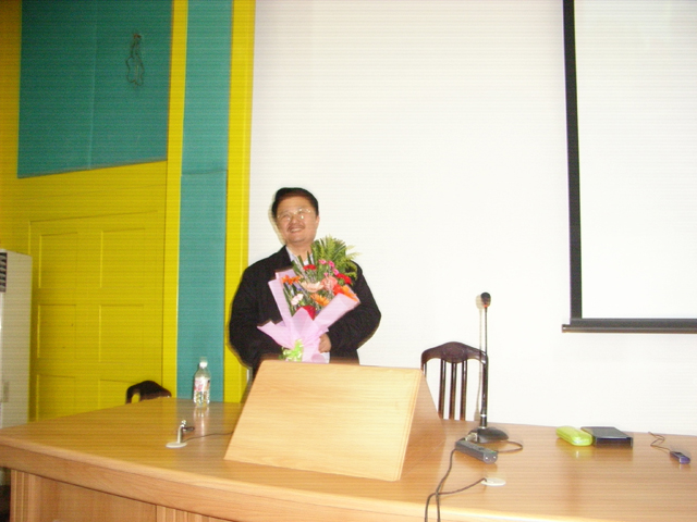 众人期待已久的由壮医药学院主办,由校党委组织部部长、壮医药学院院长、民族医学(壮医药学)学科带头人庞宇舟教授主讲的《壮医药的研究、发展与前景展望》讲座,于2007年11月20日晚在西梯一如期举行。