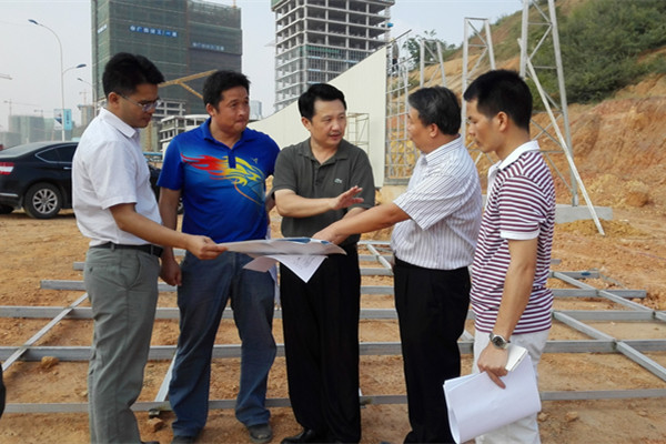 庞宇舟副指挥长首先查看了该项目施工用水用电布管安装、洗车平台和围档建设、场地平整等现场,详细听取了建设组覃文献组长和相关人员的汇报,认真听取了设计人员和施工人员的分析,庞宇舟对工作人员的工作积极性和责任感给予充分肯定,对项目建设进度、建设质量和项目实施运行等提出了具体要求。庞宇舟指出,广西国际壮医医院是自治区成立60周年大庆重点项目,是广大人民群众和社会各界广泛关注的重点工程,也是自治区人民政府关注民生、改善民生、保障民生的具体行动。对该项目的建设发展,自治区人民政府十分重视,大力支持,我们一定不能辜负领导对我们的期望和信任,要进一步增强紧迫感和责任感,千方百计破解瓶颈制约,只争朝夕加快项目前期工作进度,确保如期开工建设。