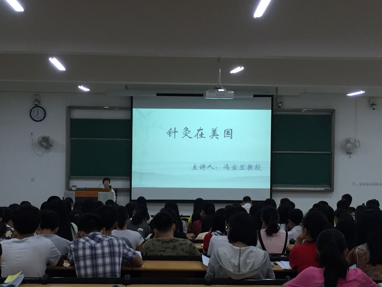 10月25日晚7点,仙葫校区教学楼1—309人声鼎沸,掌声不绝于耳。壮医药学院师生在欢呼声中,迎来了他们所喜爱的冯宝兰教授“针灸在美国”的专题讲座。壮医药学院院长林辰、学生办公室主任兰天莹、专任老师范小婷,以及14、15级全体学生参加了此次讲座。