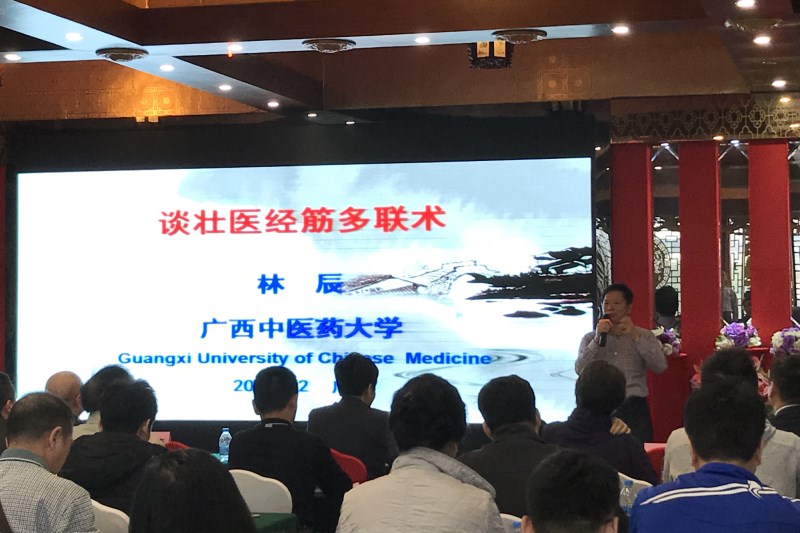 2016年12月25日,由国家中医药管理局中医学术流派传承推广办公室举办的“2016全国中医学术流派传承发展高峰论坛”在广州举行。Beat365中国唯一官方网站壮医药学院院长林辰教授参加了本次会议并就壮医经筋的挖掘整理研究、传承、应用和发展作了“谈壮医经筋多联术”的学术专题报告。林教授以问题为为导向简介了壮医经筋疗法后,以现场互动方式直奔壮医经筋多联术主题。林教授丰富的临床经验、严谨治学的态度、妙语连珠的发言赢得了在座各位专家和参会人员的阵阵掌声。